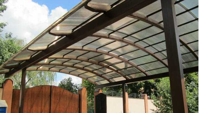 - Товщина та тип полікарбонату. Ціна суттєво залежить від того, чи це сотовий полікарбонат 4 мм, 6 мм, 8 мм або монолітний 5 мм. Порівнюйте аналогічні позиції. Найпопулярнішим для навісів є сотовий полікарбонат товщиною 6-8 мм.